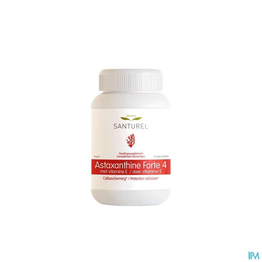 Santurel Astaxanthine Forte 4 V-caps 60 est un complément alimentaire disponible en pharmacie. Il ne peut se substituer à un mode de vie sain et à une alimentation variée et équilibrée. Ne prenez pas plus que la dose quotidienne recommandée indiquée sur l'emballage. Demandez conseil à votre pharmacien. Tenir hors de portée des enfants.